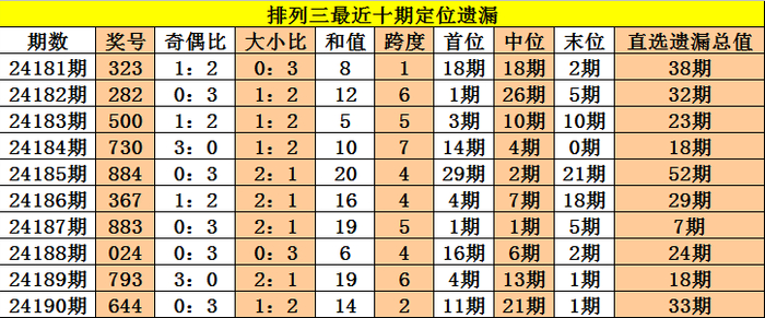 开奖回顾:排列三第2024190期奖号:644,定位直选遗漏值11期、21期、1期,遗漏总值为33期。