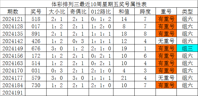 体彩排列三第2024191期发哥观点: