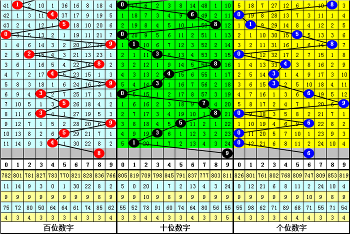 在历史开奖中,单选号码0、3、5、8开出8次,号码4开出7次,号码1、7开出6次,号码6开出5次,号码9开出4次,号码2开出3次,本期双胆参考:89。