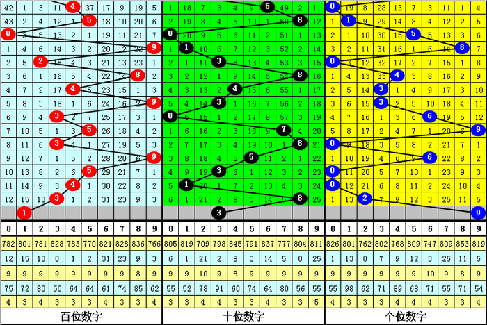 第三位上期开出奖号2,走大2点,本期该位继续走大,参考号码9。