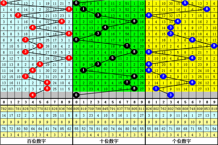 前10期跨度振幅为:6-0-2-4-4-1-1-2-5-6,开始上升,跨度出现范围较大,本期继续关注7附近跨度开出,参考跨度4。