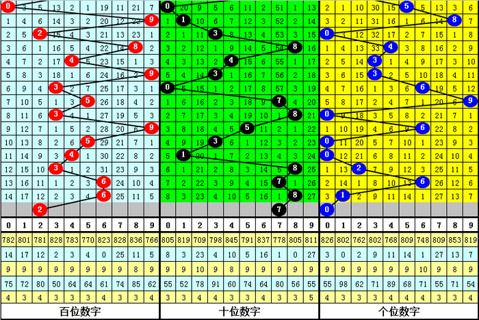 和尾分析:第194期历史同期开奖中,奖号和尾出现频次分别为:和尾4、5出现4次,和尾2、3、6出现3次,和尾0出现2次,和尾1、7、9出现1次,和尾8出现0次,其中和尾012路比为9:6:7,奇偶比为10:12,大小比为9:13,本期看好开出0路和尾,精选和尾9。