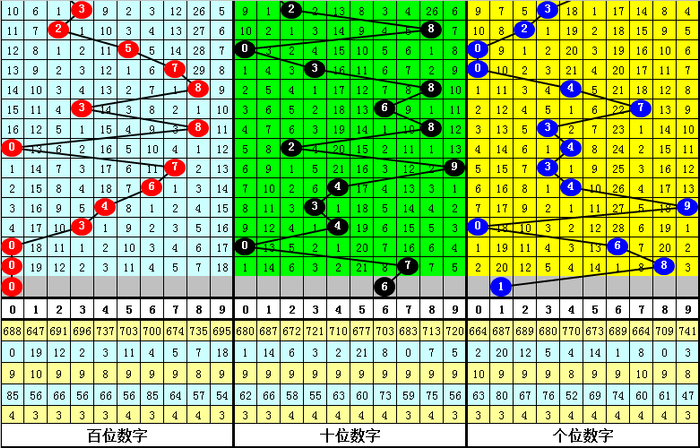 在以上统计表中,组选号码078开出之后,其下期豹子号码出现1次,组三号码出现13次,组六号码出现41次。其中,下期奖号有23期无重号,有32期开出重号,本期预计重号开出,看好开出组六号码。