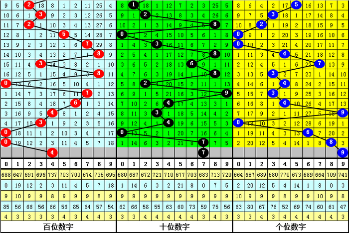 跨度判断:连续10期跨度开出012路比为3:4:3,012路跨度基本持平,跨度最近3期遗漏值分别为3期、1期和18期,本期预计跨度遗漏值走大,防温冷跨度解冻,参考跨度5。