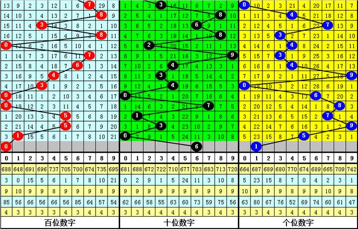 上期第一位开出奖号:1,间隔21期出现,走势非常冷,最近10期该位热码表现非常低迷,本期适当关注该位热码逐渐回补,参考号码0。