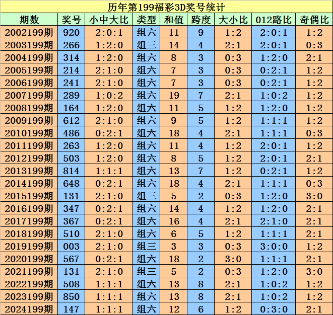 在历年同期开奖中,组三出现6次,组六开出16次,去年同期开出组六,今年同期看好组六再出。