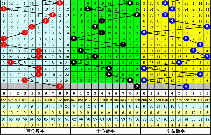 十位上期出号8,大号,大号表现相对较冷,最近3期连开大号,大号有明显转热,本期看好大号再出,参考9。