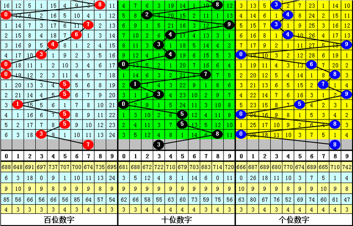 其中,号码0-9开出次数分别为:号码0开出3次、1开出2次、2开出2次、3开出3次、4开出2次、5开出4次、6开出2次、7开出4次、8开出4次、9开出4次。