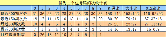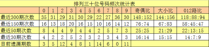 十位号码:前50期走势最活跃的号码为:3开出9个,0开出8个,8开出7个;走势最冷的号码为:6开出2个,9开出3个,1、2、4、5开出4个。十位号码012路比开出22:13:15,大小比开出21:29。本期十位排除两码:1、8,参考号码3、4、7,胆码关注4。