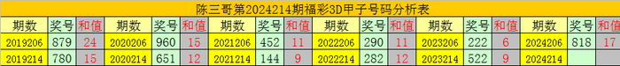则,第2024214期奖号可以参考第2024206期奖号:818。