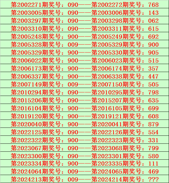 福彩3D第2024214期开奖日期:2024年8月11日,历史上第214期已开出了22次奖号,历年同期号码分别为:546、597、978、961、666、513、864、239、666、911、965、826、770、241、942、313、881、780、651、144、282、522。