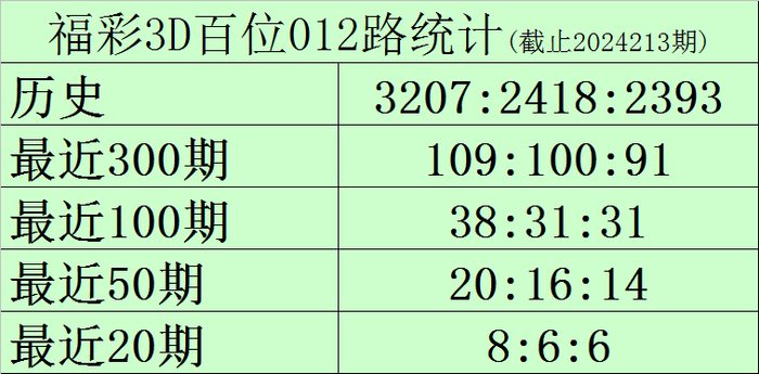 百位推荐:百位最近20期号码012路比为8:6:6,目前0路号码遗漏0期,1路号码遗漏3期,2路号码遗漏5期,另外0-9号码遗漏期数分别为: